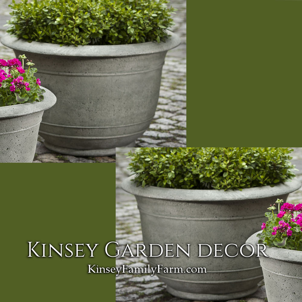 Stylish garden plant pots with an elegant appearance. The Padova Planter Large has simple lines and would be a great idea for front porch container gardening. The large capacity interior makes this planter a good choice for tree formed flowering shrubs or growing bright flowers to welcome guests. Concrete cement, home or commercial business. Shown with Padova Planter small for sale seperatly. Planter has drain hole, 10 day lead time.