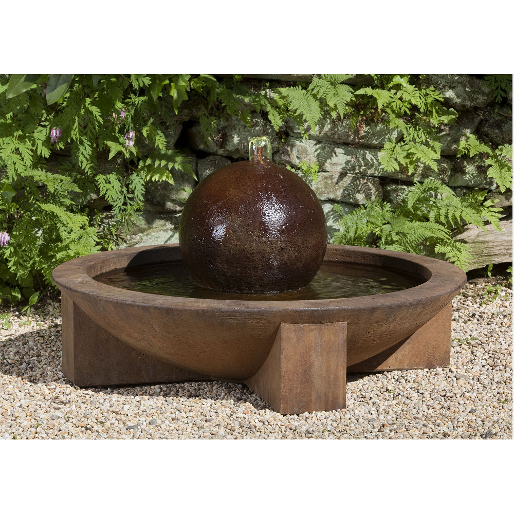 An Asian style low profile water fountain for tranquil garden decor. The Low Zen Sphere Fountain is the perfect accent for a meditation area, healing garden or Japanese garden with a soothing, round shape and the calming flow of water. Be focused on the water sliding over the ball or mesmerized as it gathers in the pool below. Recirculating and floor standing, the base rests on four angular legs which gracefully blend into the water reservoir. If Japanese Zen gardens are your style the Low Zen Sphere Fountain will bring the perfect element to your outdoor living space. Pump included. Lead Time: 10 Days.